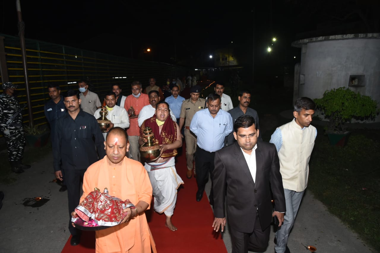 रामजन्मभूमि परिसर में चल रहे अनुष्ठान में सीएम योगी के साथ प्रधान पुजारी सत्येंद्र दास व ट्रस्ट के अध्यक्ष महंत नृत्यगोपालदास के उत्तराधिकारी कमल नयन दास, श्रीराम जन्मभूमि तीथ क्षेत्रट्रस्ट के महामंत्री चंपतराय भी मौजूद रहे। रामलला को सीएम योगी आदित्यनाथ ने, भरत को राजा अयोध्या बिमलेंद्र मिश्र ने, लक्ष्मण को डॉ अनिल मिश्र ने, शत्रुघ्न को दिनेन्द्रदास तथा शालिग्राम भगवान को महंत सुरेश दास ने वैकल्पिक गर्भगृह में पहुंचाया।